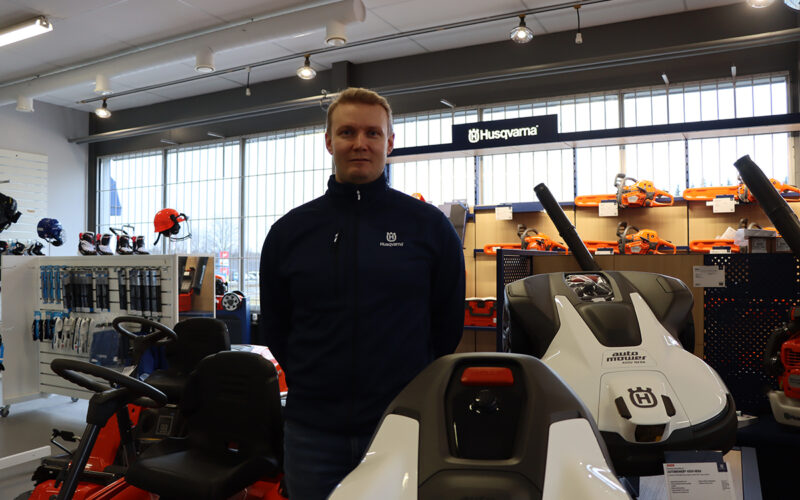 Jose Rämö avasi Mikkeliin liikkeen, jossa myydään sekä jääkiekkovarusteita että Husqvarnan pienkoneita.