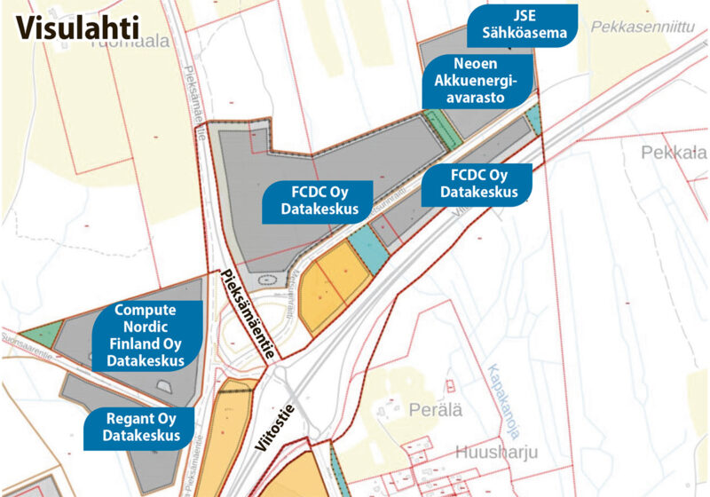Visulahden alueelle ovat datakeskuksia suunnitelleet FCDC Corp Oy, Compute Nordic Finland Oy ja Regant Oy.