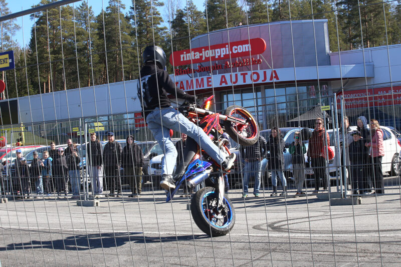 Näin haastoi poika isäänsä Mekonomenin ja Rinta-Joupin pihalla kevätpäivässä nähdyn Konsta Teiskosen stunt riding -shown jälkeen. Isä naureskeli, että lähtisi tietysti ihan helposti… Mopoilua kohti kaksikko ei kuitenkaan lähtenyt, vaan olisiko suunta käynyt makkarakojulle.